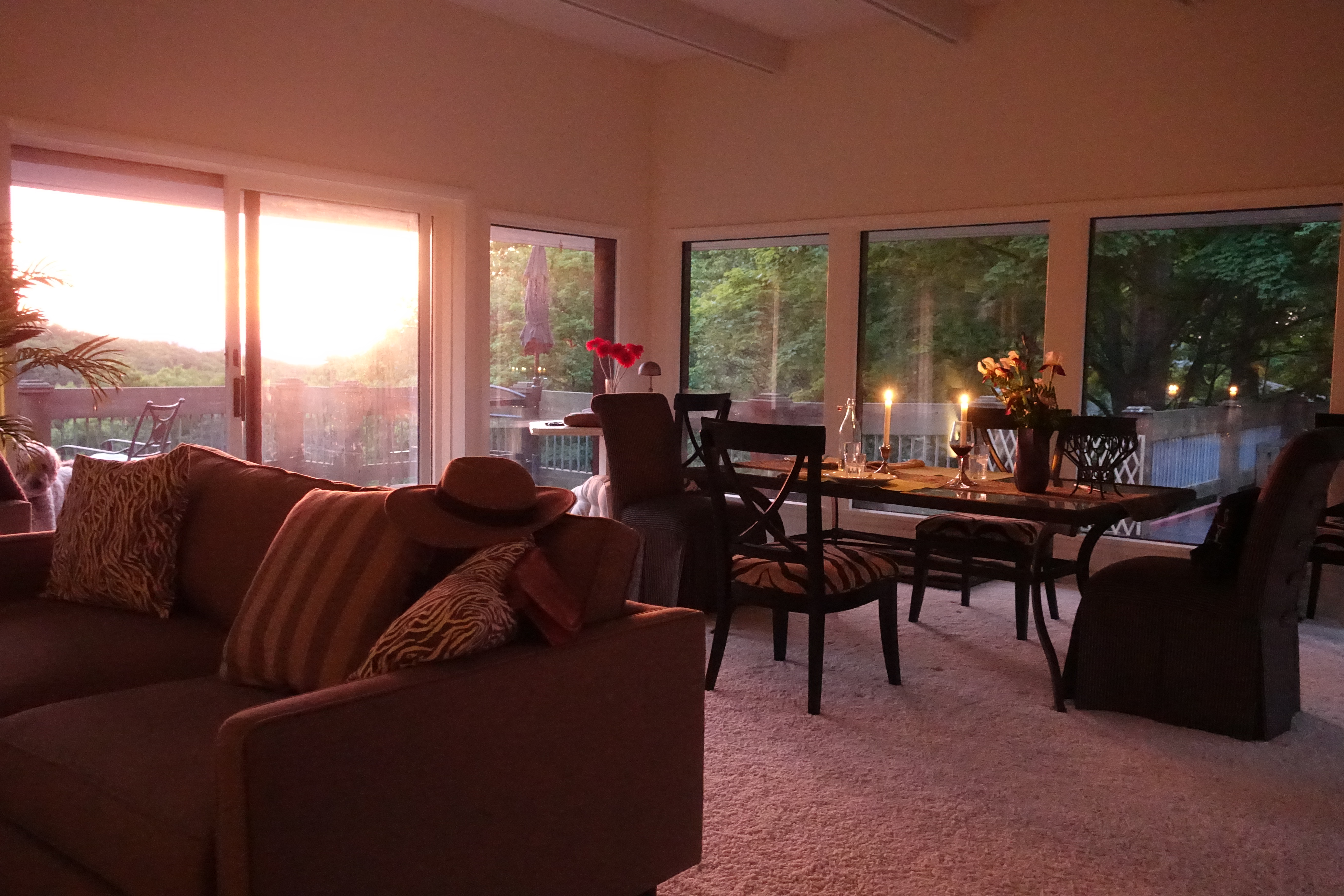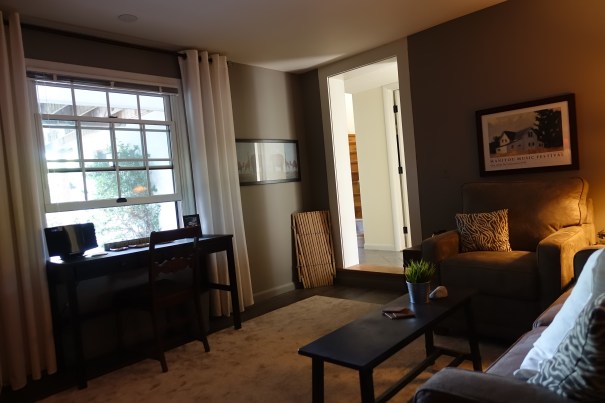 As fall turned into winter: winter into spring…and spring into summer… it became apparent that this space was a “tree house” in disguise. Removing the dark wood and replacing it with a warm “cottage white” (walls & trim), there no longer was harshness surrounding the windows. Your eyes became free to move outdoors and feel the strength of the mammoth surroundings of the National Park that enveloped you.