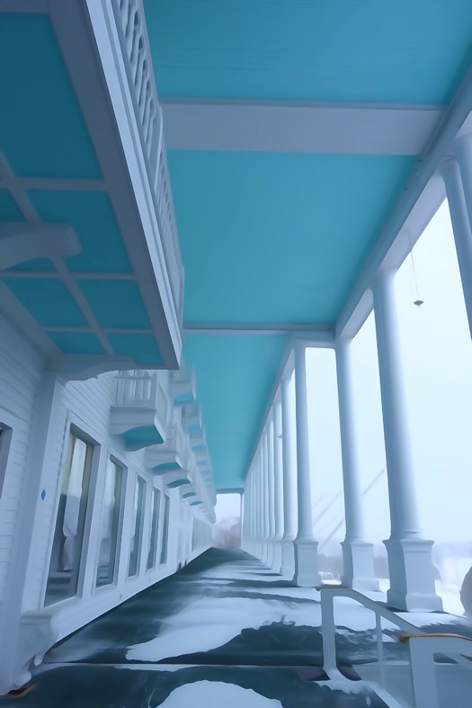 Captured Space…no words can convey what this gigantic structure emotes when visiting the Grand Hotel alone. Every February of every year for the past 30 I have visited this island treasure. Twice the winds and snow kept us at bay…One of those times was this year. Twelve inches of snowfall and wind gusts of 40 mph kept us apart. It is a puddle jump flight….maybe 3 minutes in the air but the rules are the rules. If you can not see the island from the mainland, the island will not invite you in.